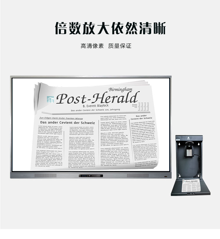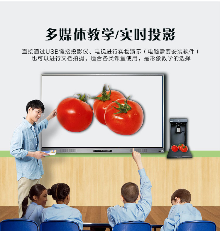 壁掛設計,采用高清攝像頭,1300萬像素,自帶OCR閱卷功能,支持批注、縮放、旋轉、保存分享、拍照等操作,有效提升課堂效率。