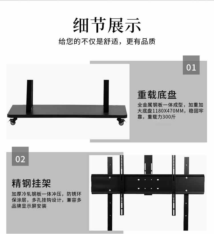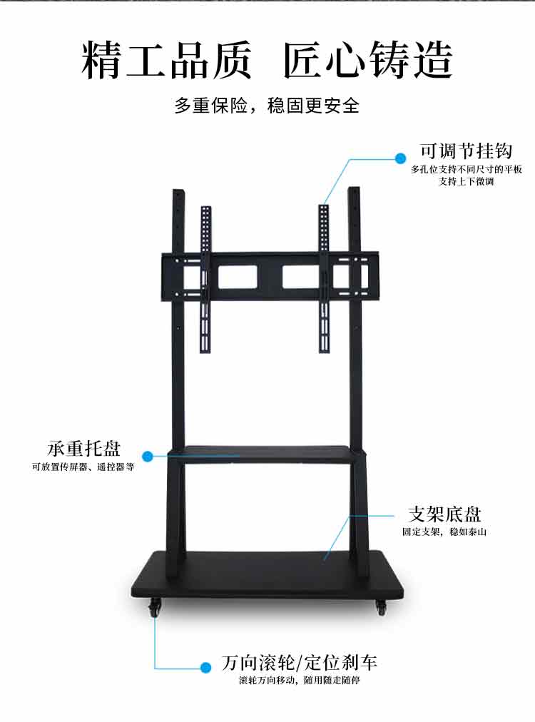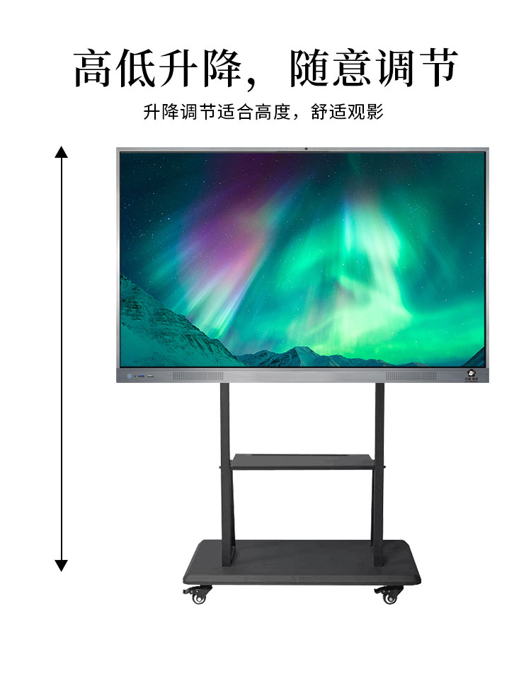 黑色教學會議移動支架專用液晶電視、廣告機、觸控一體機、電子白板、教學會議等,高低升降,隨意調節(jié)。