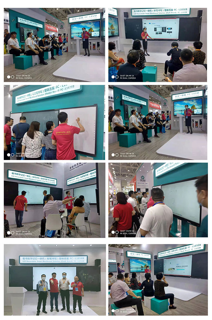 開展首日,方成展位現場人聲鼎沸,絡繹不絕。作為板書教學記憶一體機的首發者,方成一直以教育信息化為導向,深耕智慧教學產品,本屆展會帶去的185寸板書教學記憶一體機,是我們整場的聚焦產品。功能升級后的板書教學記憶一體機,融合音頻互動教學,超大尺寸帶來的全新體驗,不斷刷新了教育各界領導對板書記憶的認知;展位上我們以詳細的講解,吸引了一波又一波的人駐足了解。