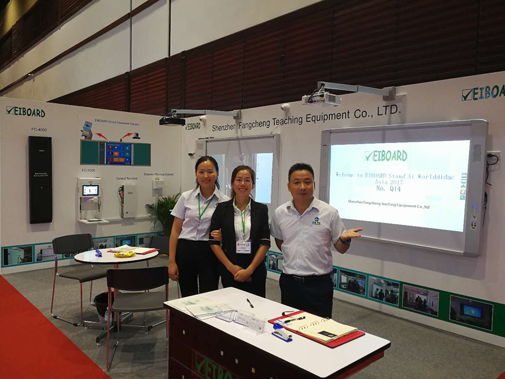 2017年10月10日至12日方成教學在泰國曼谷迎來了由世界教具聯合會(Worlddidac)主辦的2017亞洲教育技術裝備展(Worlddidac Asia)。方成教學以多媒體一體機、交互式電子白板、液晶觸控一體機、中央控制系統、高清數字展臺、一體遙控器等教學設備及其應用軟件引領行業,致力打造以多媒體教學一體機為入口的“物聯網 + 互聯網”智慧教育生態圈占領市場。