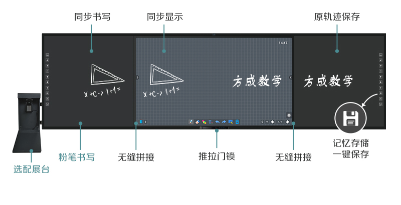 互聯黑板-記錄板書內容、再現課堂過程、轉化教學資源,板書教學記憶一體機集六大產品于一機,在不改變老師板書習慣的前提下,實現傳統教學與多媒體設備的智慧融合,設定了有板書記憶、板書同步顯示、板書自動分享等多樣化功能,每一個功能的實現都賦予了自己的使命。